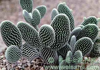 仙人掌科植物,呈灌木状生长。茎扁平状,刺座稀疏。花朵鲜黄色。浆果梨形。花期5~7月。
